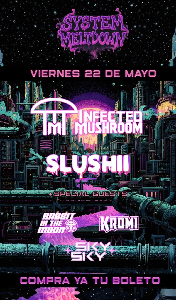 Asegura tu lugar y vive una noche de música electrónica con Infected Mushroom, Slushii y DJs invitados.