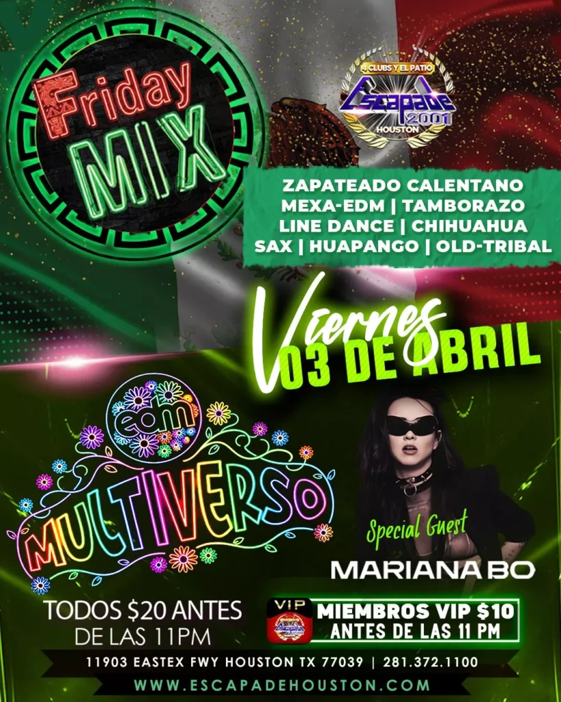Descubre los próximos eventos en Escapade 2001, el mejor nightclub en Houston. Música en vivo todos los viernes y los mejores DJs en nuestros cuatro ambientes. ¡No te lo pierdas!"